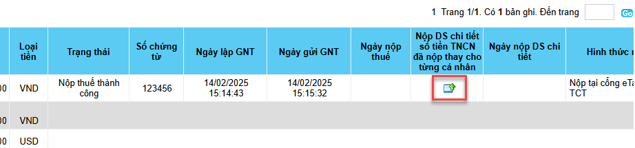 “Danh sách chi tiết số tiền nộp thuế TNCN đã nộp thay” theo chứng từ nộp NSNN kỳ tháng 2/2025 như sau: