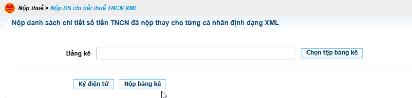 Trường hợp không tra cứ ra chứng từ để đính kèm “Danh sách chi tiết số tiền nộp thuế TNCN đã nộp thay” thì doanh nghiệp thực hiện nộp tại tab “Nộp Danh sách chi tiết thuế TNCN XML” tại chức năng Nộp thuế.