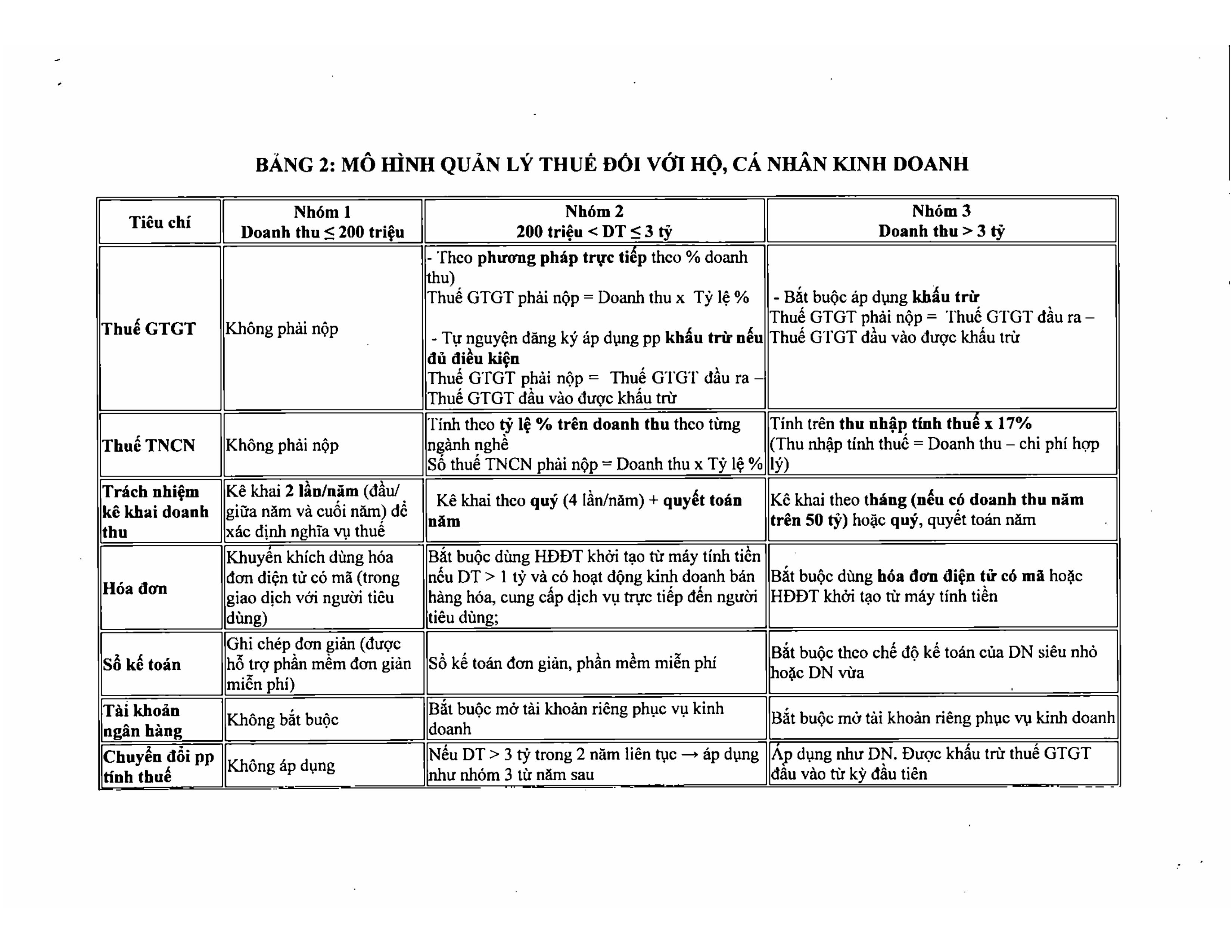 Mô hình quản lý thuế đối với hộ, cá nhân hộ kinh doanh
