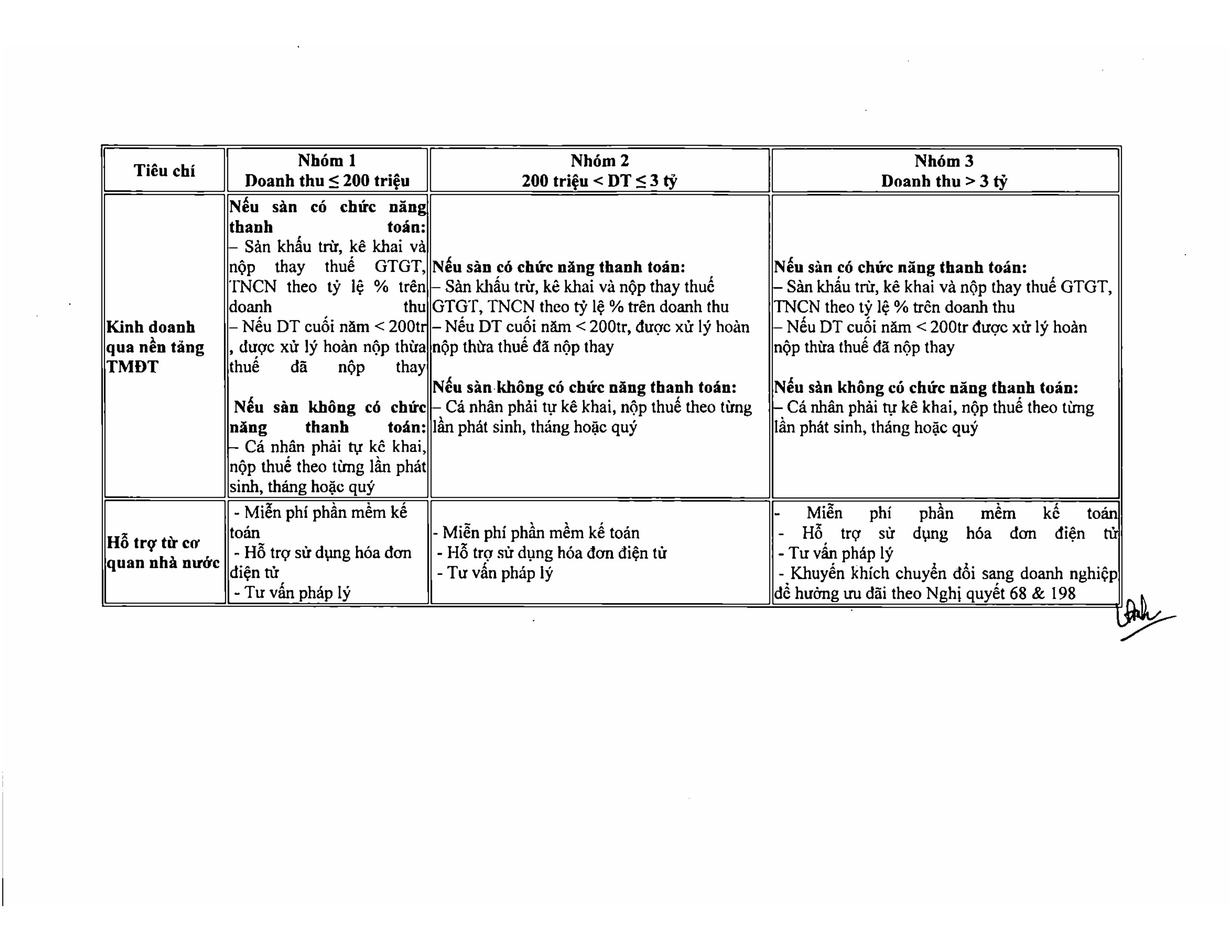 - Đảm bảo 100% hộ kinh doanh được tiếp cận thông tin và nhận được sự hỗ trợ từ cơ quan thuế về nội dung chuyển đổi từ phương thức thuế khoán sang phương thức kê khai, chuyển đổi từ hộ kinh doanh lên doanh nghiệp.
