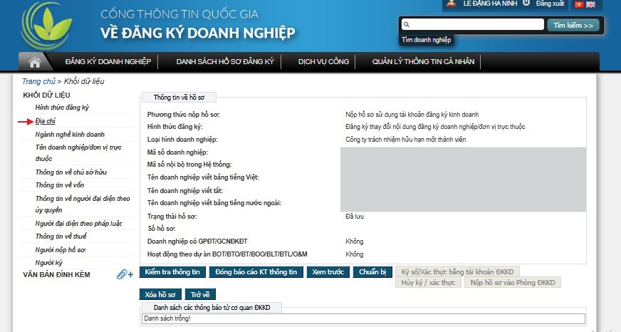 Hướng dẫn thực hiện hồ sơ đăng ký cập nhật địa chỉ đăng ký kinh doanh mới