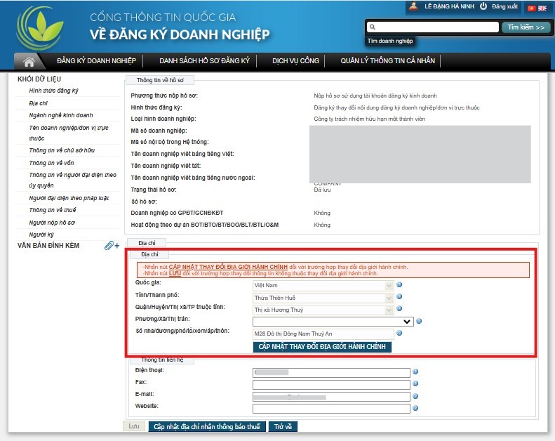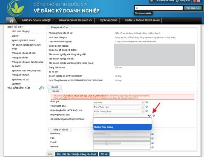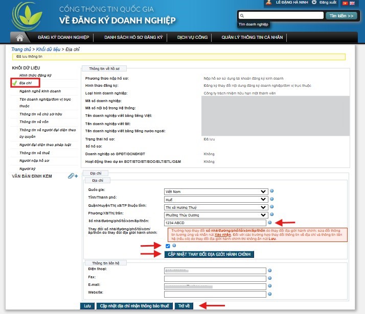 1. Đăng ký thay đổi, cập nhật thông tin địa chỉ trụ sở doanh nghiệp:
