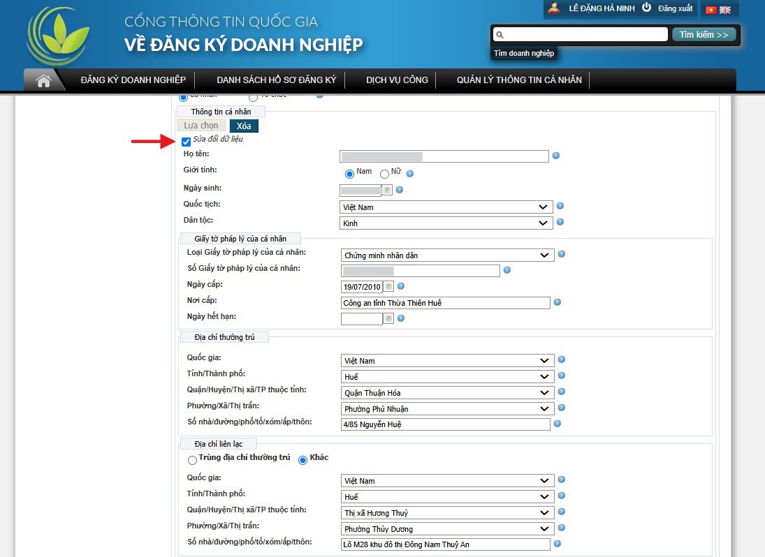 - Thực hiện thao tác xóa và nhập chính xác thông tin sửa đổi cập nhập;