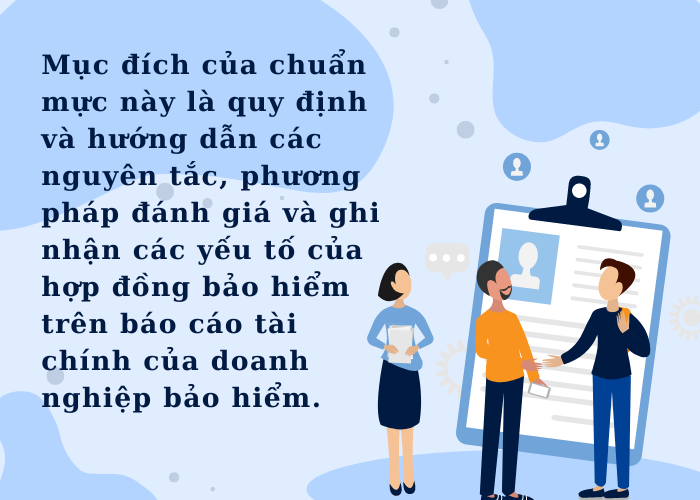 Mục đích của chuẩn mực này là quy định và hướng dẫn các nguyên tắc, phương pháp đánh giá và ghi nhận các yếu tố của hợp đồng bảo hiểm trên báo cáo tài chính của doanh nghiệp bảo hiểm