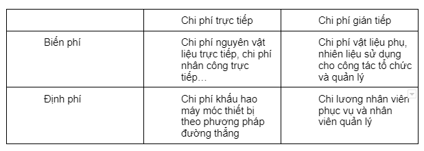 Mối quan hệ giữa hai cách phân loại chi phí: