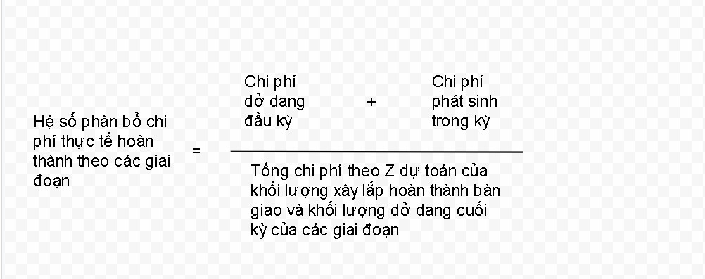 Đối với những công trình, hạng mục công trình được quy định thanh toán theo giai đoạn quy ước thì sản phẩm dở dang là các giai đoạn xây lắp chưa hoàn thành và được đánh giá theo chi phí thực tế trên cơ sở phân bổ chi phí thực tế đã phát sinh cho các giai đoạn xây lắp đã hoàn thành và chưa hoàn thành căn cứ vào giá thành dự toán và mức độ hoàn thành của chúng